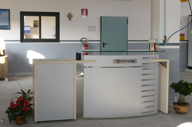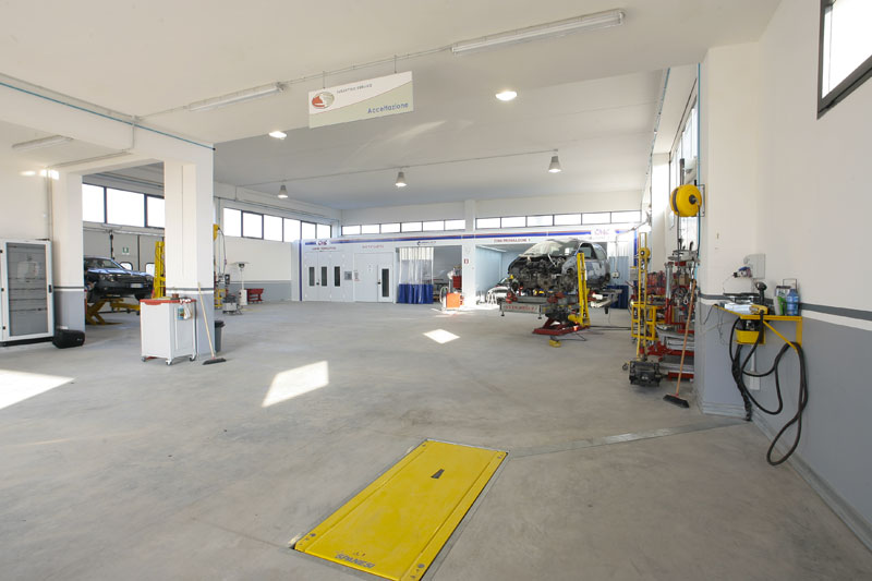 - n.1 zona di accettazione e preventivazione dotata di sollevatore idraulico, banco accettazione con PC e software di carico e scarico vetture, sala d’attesa, ufficio